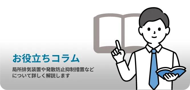塗装、生産ラインのインクジェットプリンター、生産現場及び研究室の洗浄、印刷、接着剤の製造、電子部品製造、ネイルの施術などにおける有機溶剤を使用する作業現場ではVOC対策が不可欠です。 各種サポートをまとめましたのでご参考にしてください