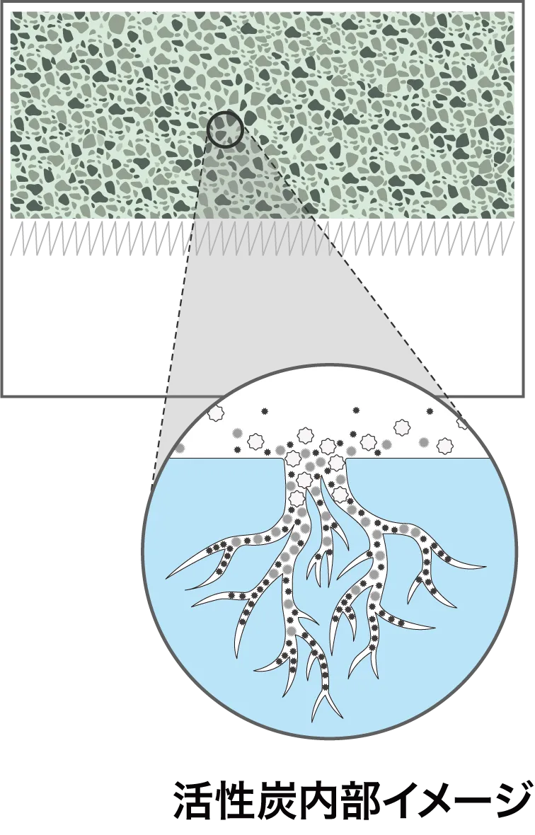 高性能活性炭による優れた吸着力